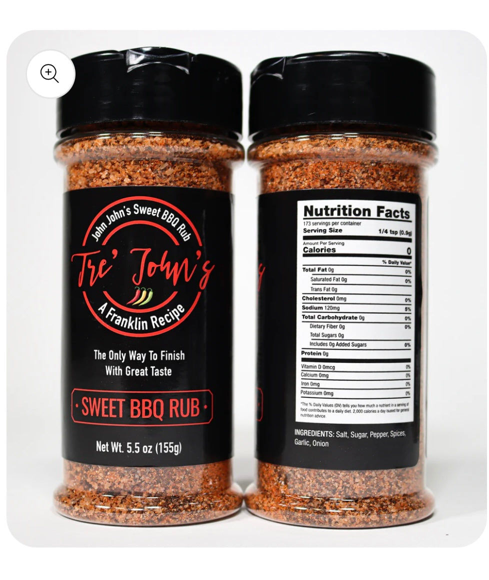 5.5oz gluten-free BBQ rub. Perfect for chicken, beef or pork.